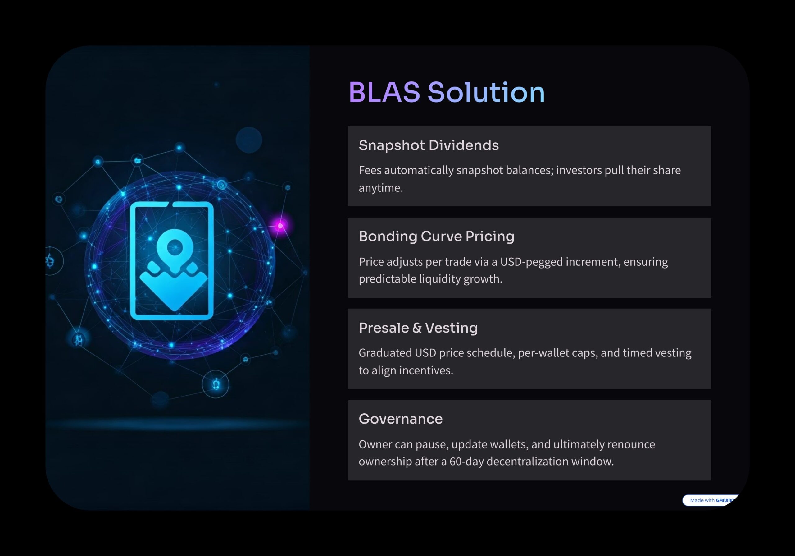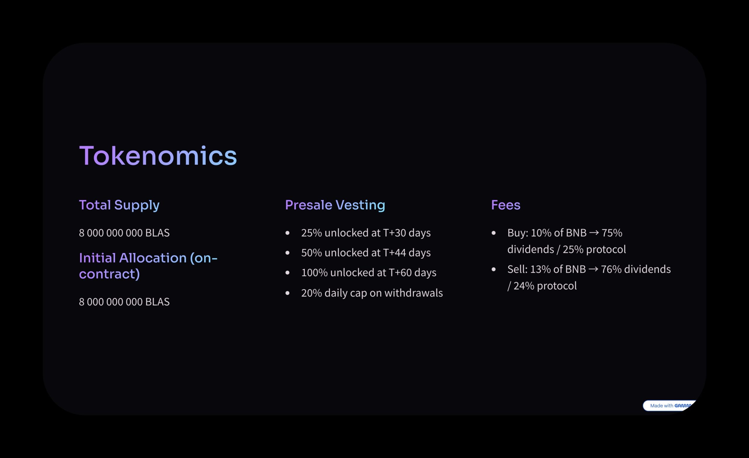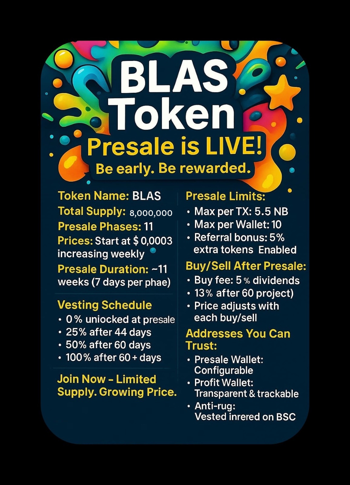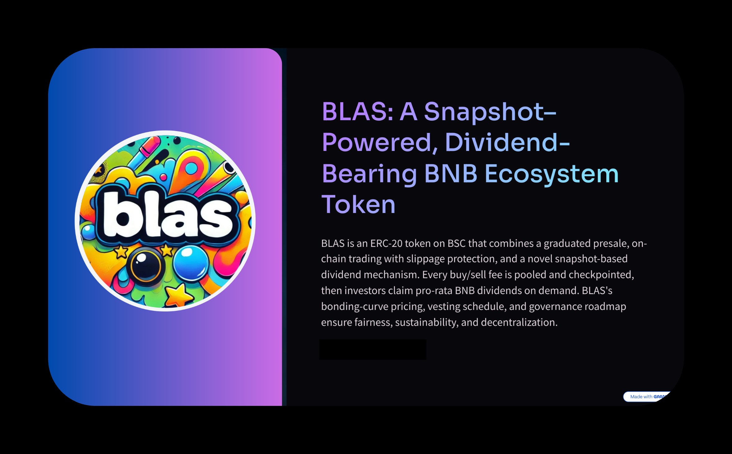 BLAS is a BNB Chain token with presale, dynamic pricing, referral rewards, and dividends created by BLAS Ai.